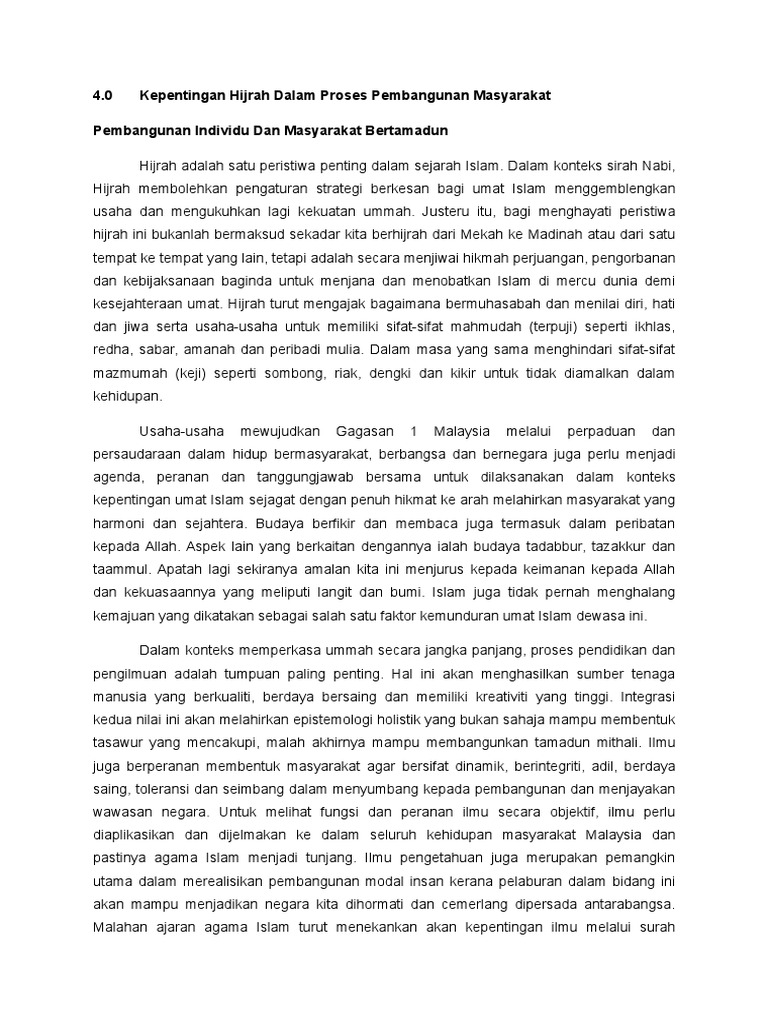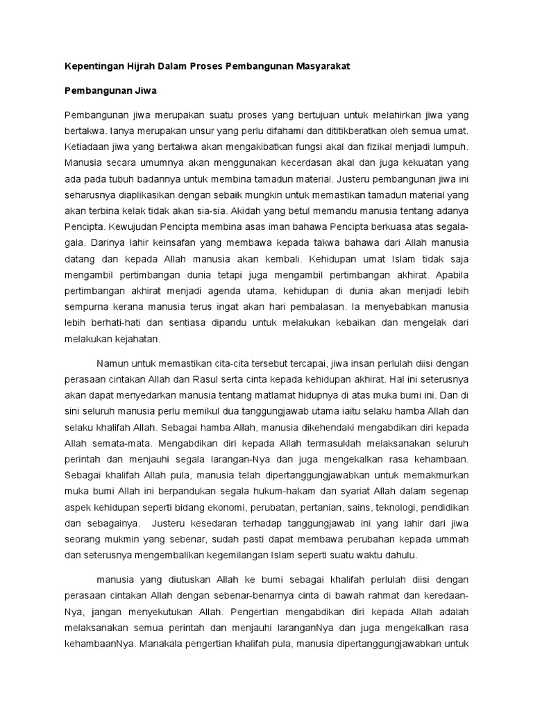 Kepentingan Hijrah Dalam Proses Pembangunan Masyarakat Pdf